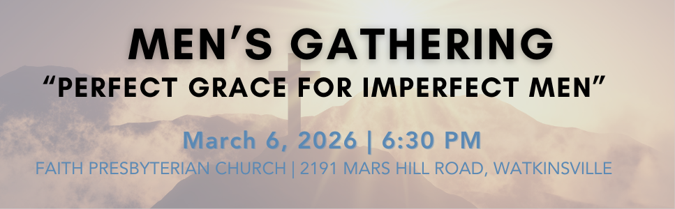 Men (ages 13+) - we hope you can join us for a men's gathering on Friday, March 6 at 6:30 PM. There will be a cookout, fellowship, and discussion on "Perfect Grace for Imperfect Men."